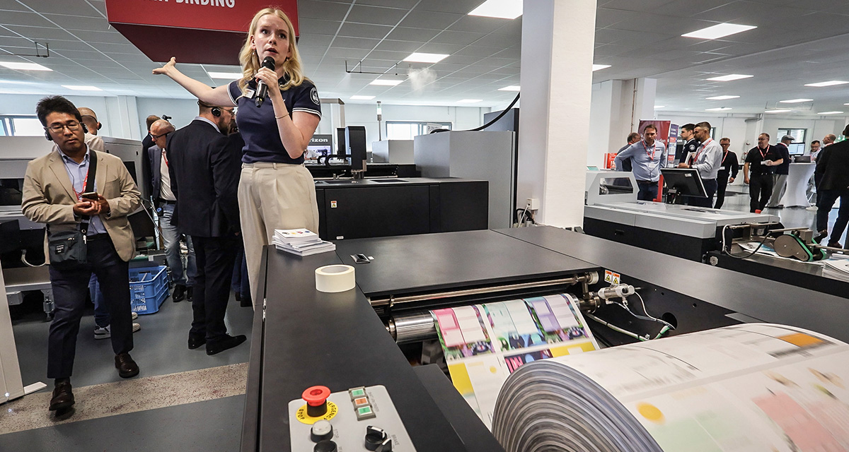 At Horizon Finishing First 2025, this system produced books from rolls printed by Canon and Screen, containing book jobs of variable sheet count and finished sizes on each roll. Paper rolls were supplied by Crown van Gelder.