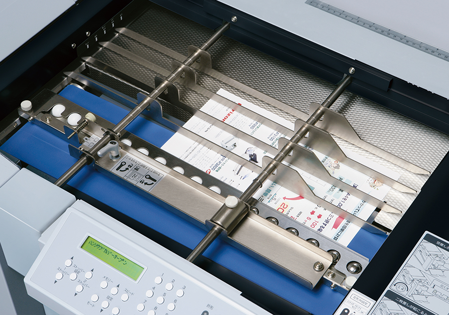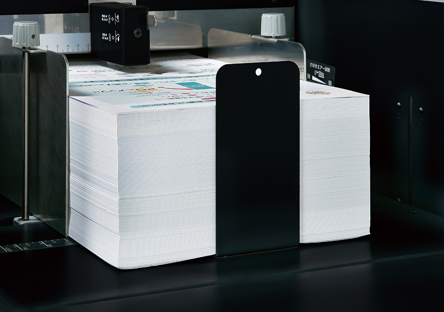 只需选择纸张尺寸和折页模式,各个部分自动进行设置。折页机器配有2个栅栏以满足不同的折页需求。以0.1mm进行微调,以实现精确折页。