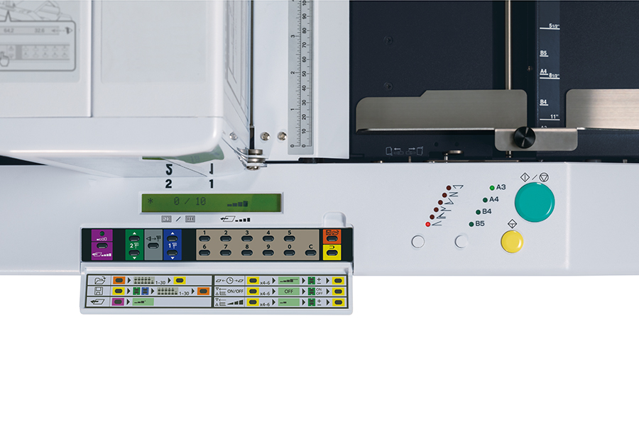 缩短准备时间的自定义设置: 可以从操作面板上设置自定义纸张尺寸和折叠模式。可储存31项作业以便快速调用。也可使用预设功能进行计数控制和速度调整。