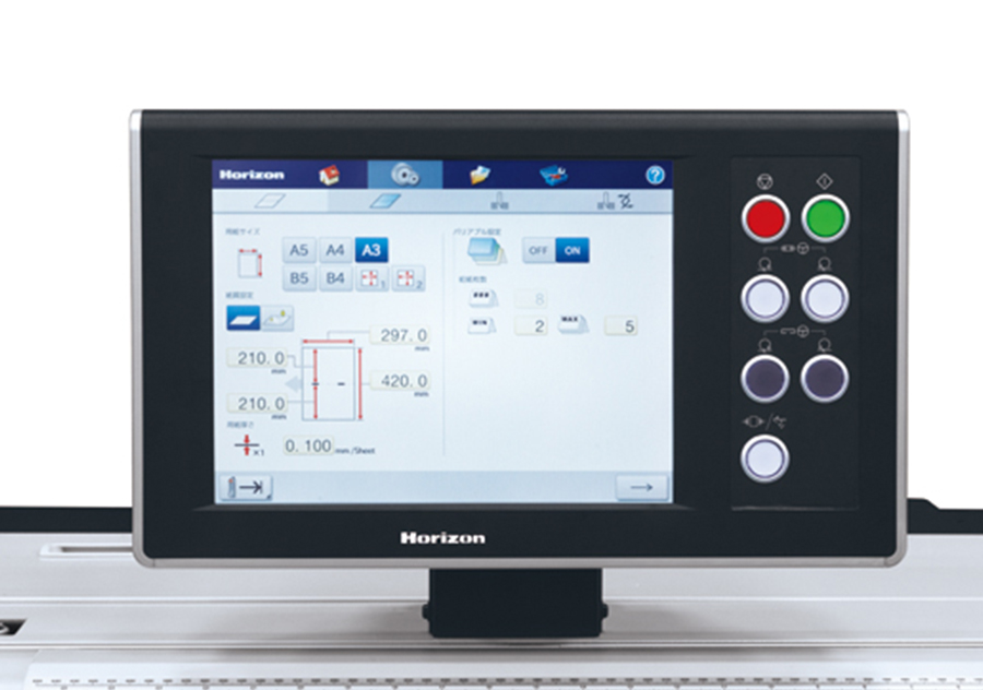 高质量: 通过 Horizon 独特的纸张传送系统和抖纸,压痕和折页,骑订和切书机的点动套准系统,实现专业品质的生产。
